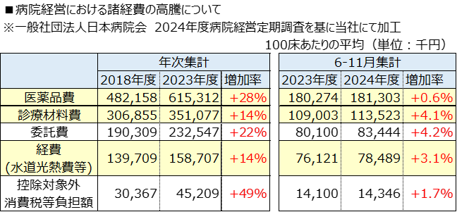 人件費に加えて、物価上昇によるコストの増加も病院経営を圧迫しています。