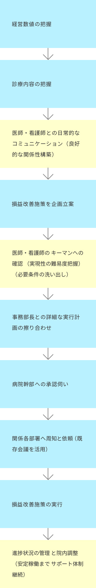 経営健全化支援業務は、経営の健全化が必要な病院にとっては重要な取組みです。しかしながら、経営層が意思決定をして、方針を打ち出し、指示を出すだけではなかなか成果があがるものではありません。